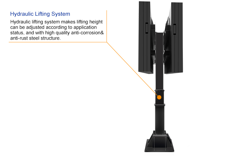 Hydraulic lifting system makes lifting height can be adjusted according to application status,and with high quality anti-corrosion and anti-rust steel structure.Thin and light design,the surface is covered with tempered glass, which has strong aging resistance and impact resistance. The cabinet is made of aluminum alloy and is thin and light.