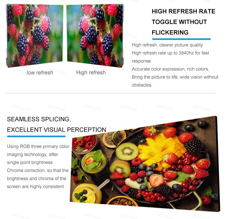 1. Indoor and outdoor full-color LED screens mainly refer to P1.25 、P1.5625、P1.875 、P2、P2.5 screens, which are widely used in meeting rooms, exhibition halls, restaurants and other scenarios that require high screen display.