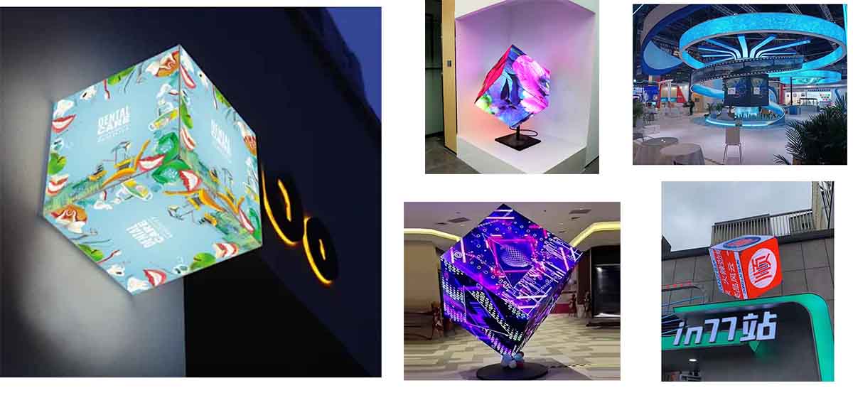 Full color led cube screen because of its more unique shape, can achieve a more fashionable display effect, mainly used in some science museums, terminals, museums, exhibition halls, hotels, disco, stage scene, indoor shopping malls, city squares and so on;